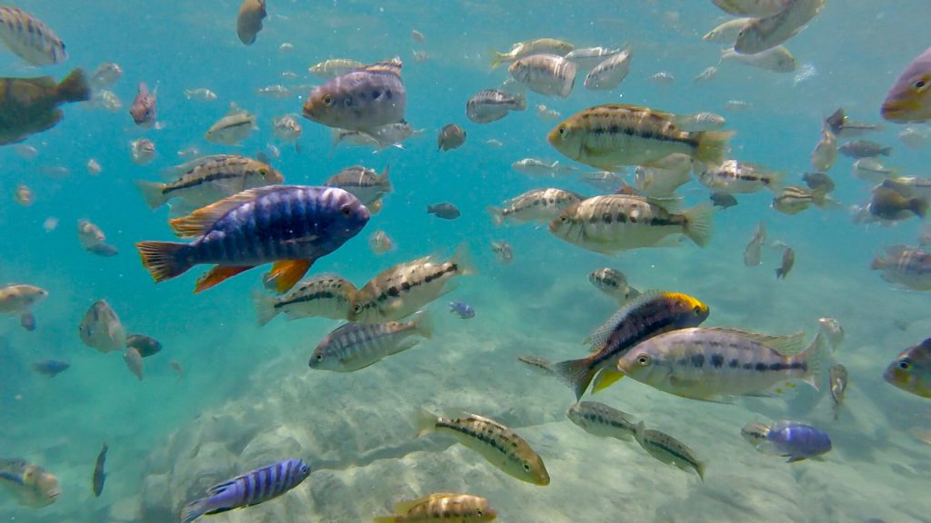 Der Malawisee an der Bucht der Halbinsel Cape Maclear ist ein Fische-Paradies. Für die Touristen, die Seeadler, die local Fishermen aber auch für die Fische…