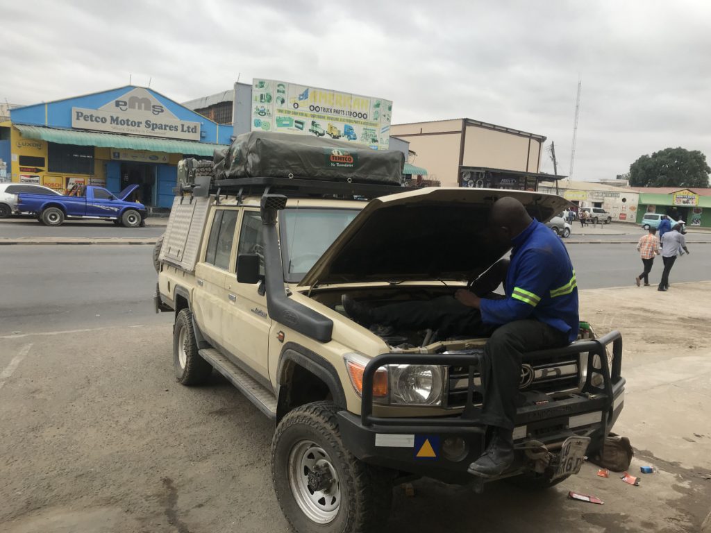 Tage der offenen Motorhaube: Nach dem Frühstück nehme ich mir etwas Zeit um sämtliche Sicherungen im Auto zu überprüfen. Zum einen ist die Spannung der Kühlschrank-Batterie immer noch im kritischen unteren Bereich. Und zusätzlich funktioniert die Pumpe unseres Wassertanks nicht mehr. Ebenso die LED-Beleuchtung des hinteren Laderaums, die USB-Ports und der Power-Inverter in der Fahrerkabine: also doch ein paar Sicherungen mehr… +++ Unzählige Versuche, das Problem mit Duard per WhatsApp-Chat im Schnellkurs „Autoelektrik“ zu lösen. Leider nur die Erkenntnis, dass das Problem tiefer liegt und besser es noch einmal in einer Werkstatt zu prüfen. Optimistisch fahren wir ins Zentrum von Lusaka zu „Autoworld“. +++ 3 Stunden später das Ergebnis des Mechanikers: Kabel, Verbindungen und Sicherungen sind in Ordnung, aber die CTek-Charger Box scheint defekt zu sein und wir sollten das bei dem Spezialisten von „AA-Electronics“ prüfen lassen. Leider ist es schon kurz vor 5, Feierabendzeit und die Rush Hour von Lusaka im vollem Gang… +++ Fahrzeit bis ins Pioneer Camp: 1,5 Stunden für 20 Kilometer. +++ Zum Abendessen gibt’s jetzt nur noch Tomatensalat und Toast. +++ Noch eine weitere Nacht in Lusaka. +++