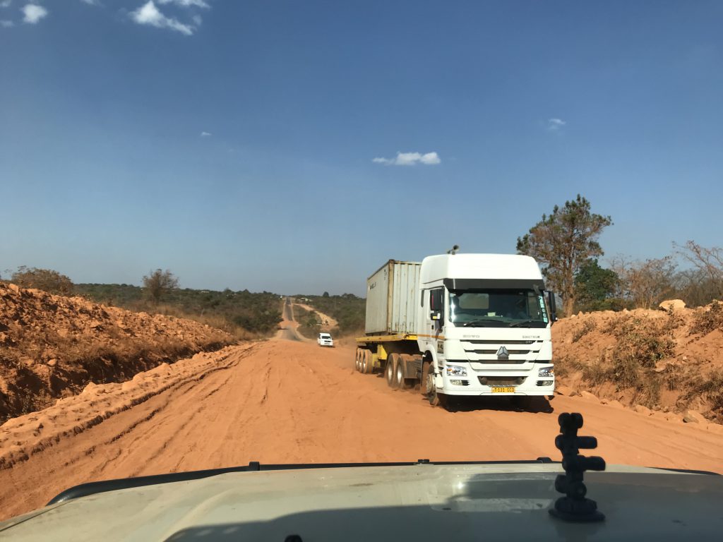 Die bisher längste Fahretappe steht an: 560 Kilometer auf der Great North Road. +++ Wir werden von den Lauten diverser Farmtiere früh geweckt: Schweine (4 Uhr), Hähne, Pfauen, Rinder… Gegen 6 Uhr packen wir unser Zelt ein, kaufen noch etwas Proviant im Hofladen und verlassen die Fringilla Guestfarm. +++ Noch ein kurzer Nachtrag zur Farm: Ein Mischung aus Bauernhof, Hofläden mit Restaurant, Ferienhäusern, Campsite aber auch mit kleiner Klinik. Ein Stück heile Welt, eine Art Farm-Disneyland für die reiche Mittelschicht Lusakas. Wir teilten den Campsite mit 40 sehr disziplinierten Schulkindern, die Abends nach dem Singen des Fringilla-Farm-Liedes ruhig und ohne Krawall zu Bett gingen. Und vorher besuchte uns noch das alte Besitzerehepaar im elektrischen Golfwagen. +++ Die Fahrt auf der Great North Road ist anstrengend: zum einen die große Entfernung, Schlaglöcher und Tempolimits zum anderen die unzähligen LKWs (vor allem zwischen Lusaka und dem Copperbelt), die das Überholen schwierig machen. +++ Landschaftlich ist es eine schöne Strecke: grün-rote Miombewälder vor blauen Himmel, die nicht mehr so vertrocknet sind wie in südlicheren Gegenden. +++ Ankunft in der Mutinondo Wilderness gegen 17 Uhr, gefahrene Kilometer: 560 +++