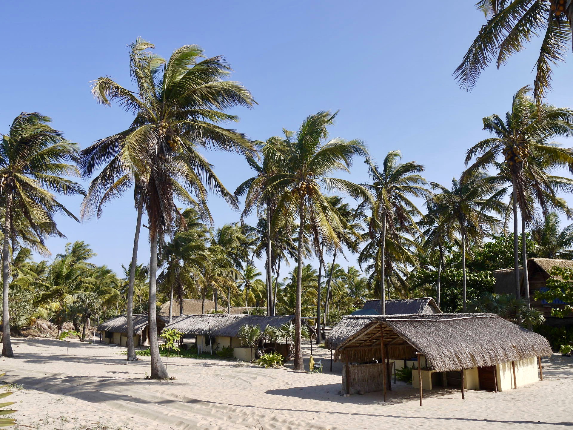 320 Kilometer weiter südlich verändert sich die Landschaft: Kokospalmen und Cashewbäume prägen das Bild. Wir fahren an die Westspitze der Halbinsel Inhambane, die hier als schmaler Streifen zwischen landseitiger Lagune und dem offenen Meer endet.