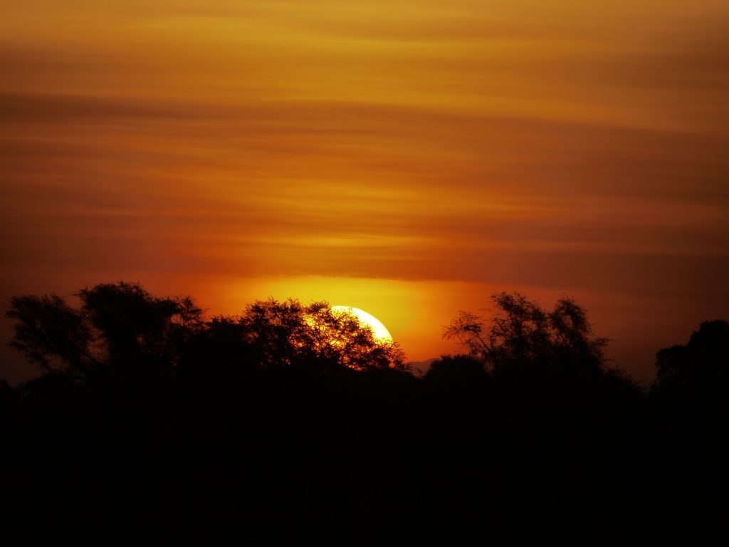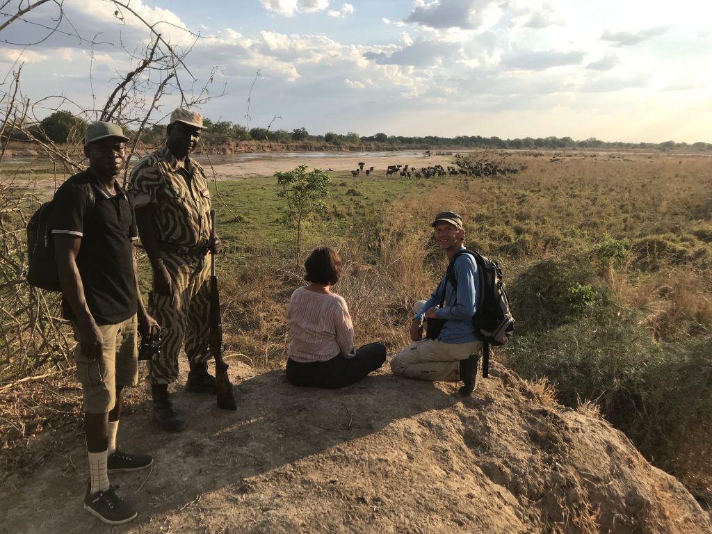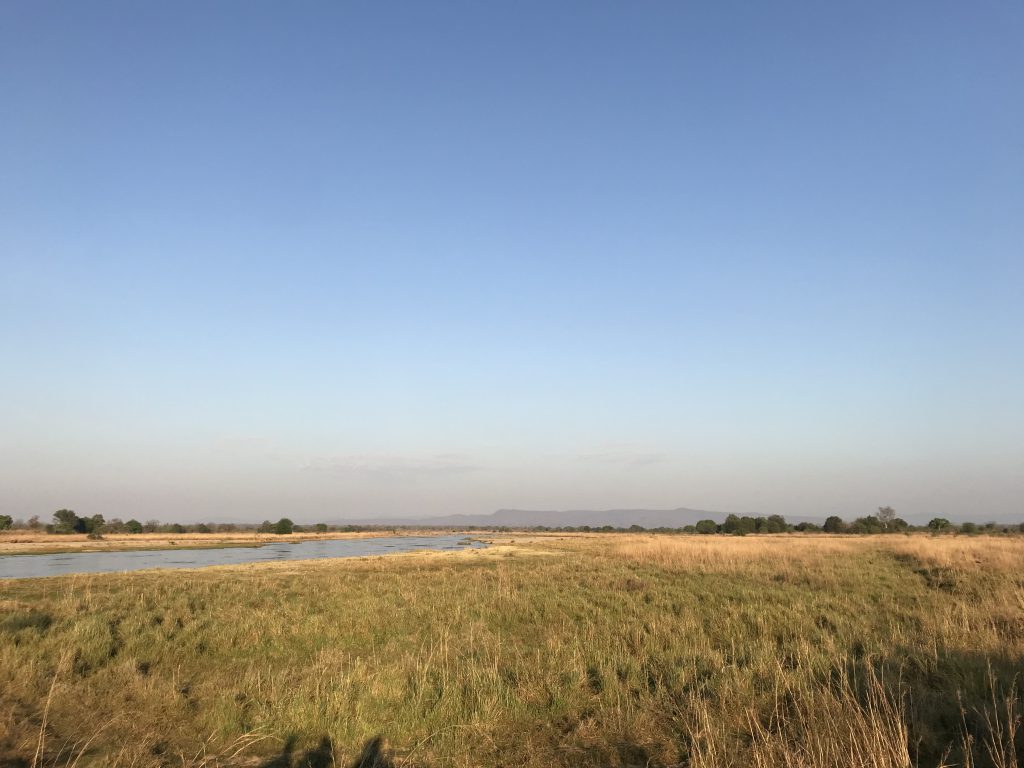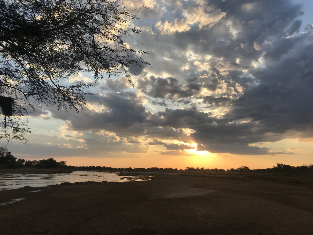 Unumstrittene Highlights sind die Bushwalks: mit einem frühen Wakeup Call zum Sonnenaufgang um 5 Uhr geht es entlang des Mwaleshi-Ufers durch den Busch. Über seichte Stellen und Sandbänke überqueren wir den Fluß. Zebras, Pukus, Impalas und eine Löwenfamilie mit drei Jungtieren begegnen uns. Gegen 9 Uhr – es ist bereits ziemlich heiß – werden wir von einem Safariwagen abgeholt und es geht zurück ins Camp. Bis 16 Uhr dösen wir, von der Hitze träge, dann folgt der zweite Bushwalk, diesmal in die gegengesetzte Richtung. Nicht nur Tierbeobachtungen sind Teil eines Bushwalks, man lernt auch viele interessante Dinge: Spurenlesen, Pflanzen, Insekten oder auch über die Verwendungsmöglichkeiten getrockneten Hyänenkots, der mit seinem hohen Calciumgehalt zu weißem Pulver verarbeitet zum Kalken von Wänden oder auch ein Ersatz für Schulkreide ist.