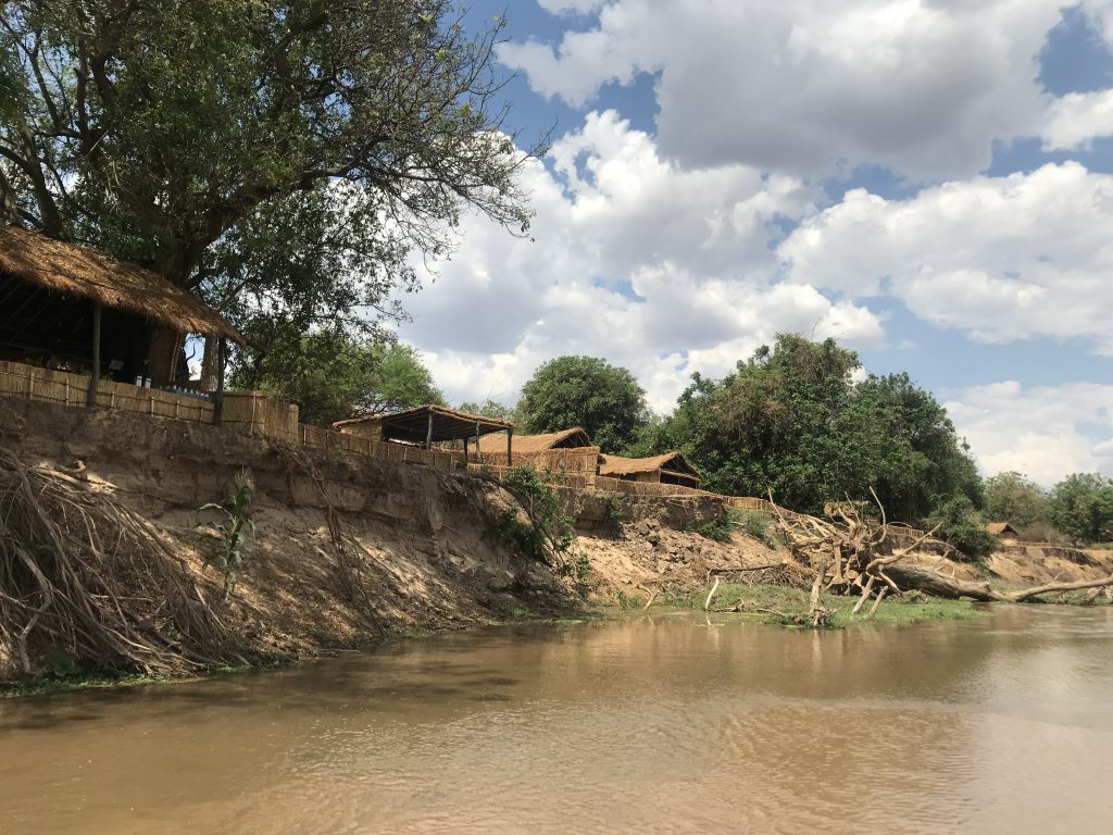 Das Buffalo Camp ist keine mondän-exklusive Safarilodge, sondern ein echtes Bushcamp. Jedes Jahr zur Beginn der Trockenzeit im Mai wird es mit dem Material vor Ort – Holz und Gras – komplett neu errichtet. Und mit Beginn der Regenzeit Anfang November wieder abgebaut. Nur wenig bleibt vor Ort zurück; das meiste Equipment und Gerät wird mühsam über die holprigen Pisten mit dem Pickup transportiert. Es ist das einzige Camp im North Luangwa, das innerhalb des streng geschützten Rhino Sanctuary liegt, dem Nashornprojekt der Frankfurter Zoologischen Gesellschaft.
