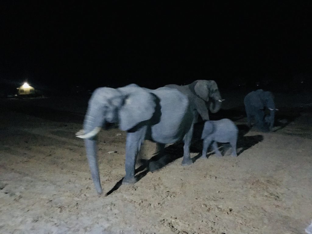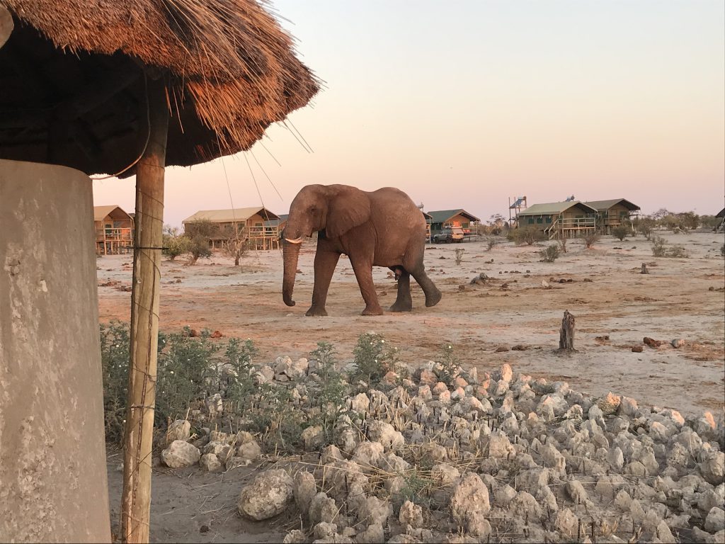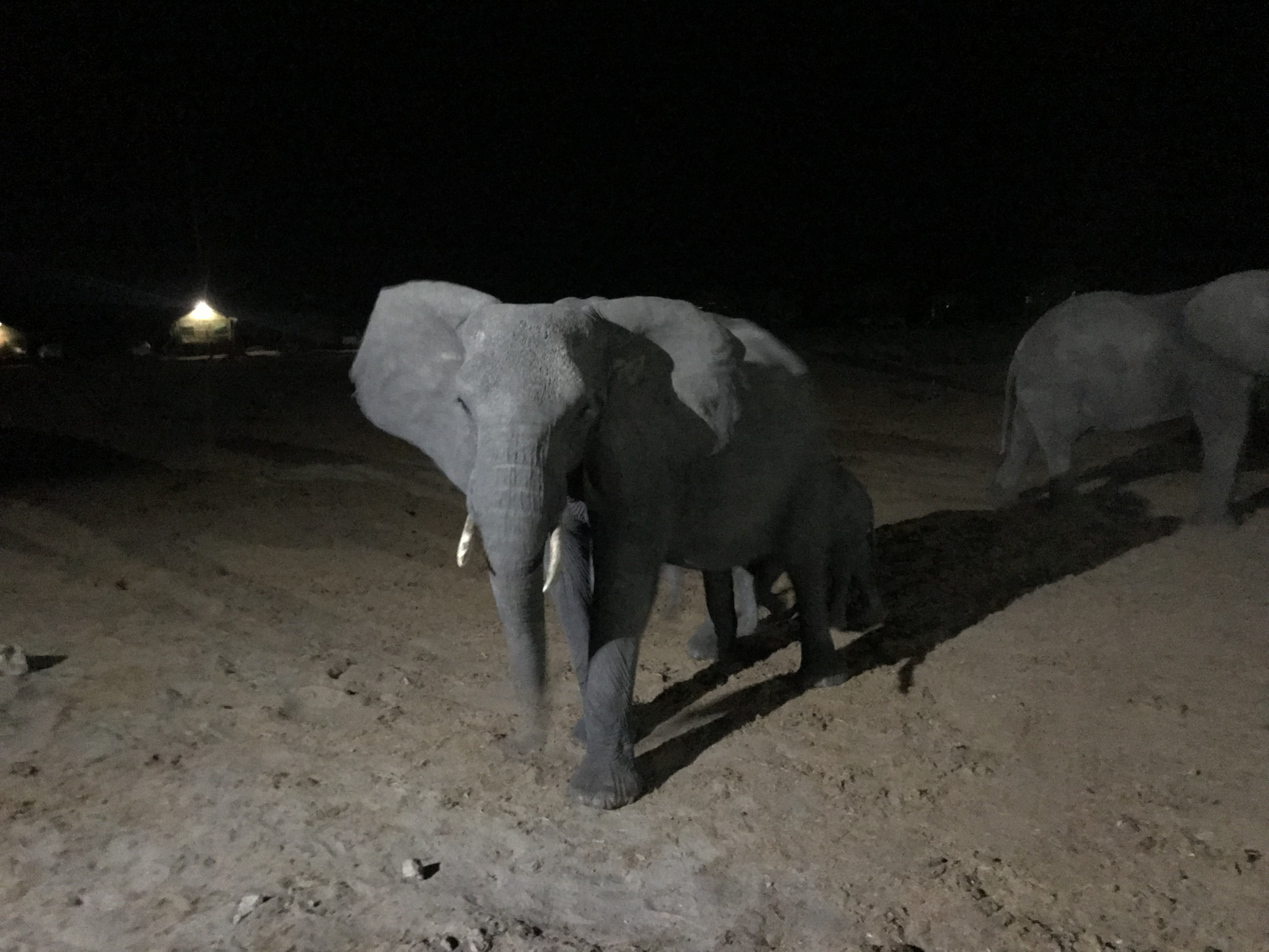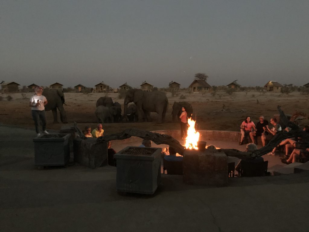 Elefant Sands ist eine große, fast baumlose sandige Fläche mit einem Wasserloch. Rundrum gibt es je nach Kassenlage der Reisenden Zeltchalets oder Campingplätze. Hochgerüstete Outdoormobile konkurrieren mit Overlander-LKW um die besten Plätze.