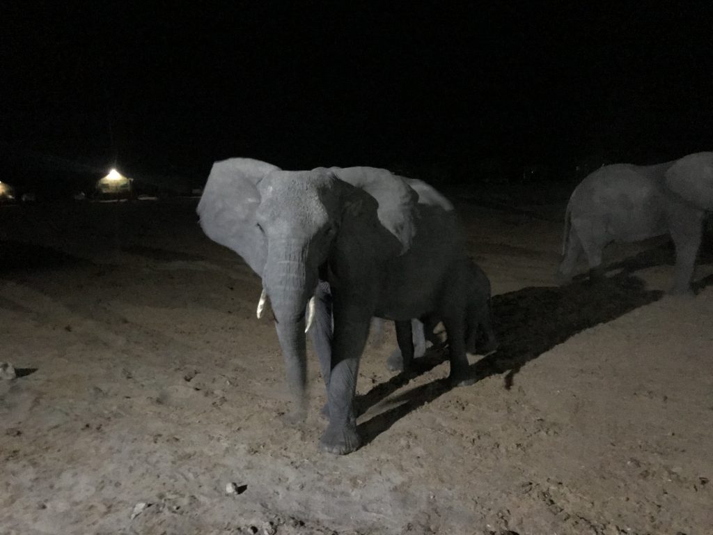 Elefant Sands ist eine große, fast baumlose sandige Fläche mit einem Wasserloch. Rundrum gibt es je nach Kassenlage der Reisenden Zeltchalets oder Campingplätze. Hochgerüstete Outdoormobile…