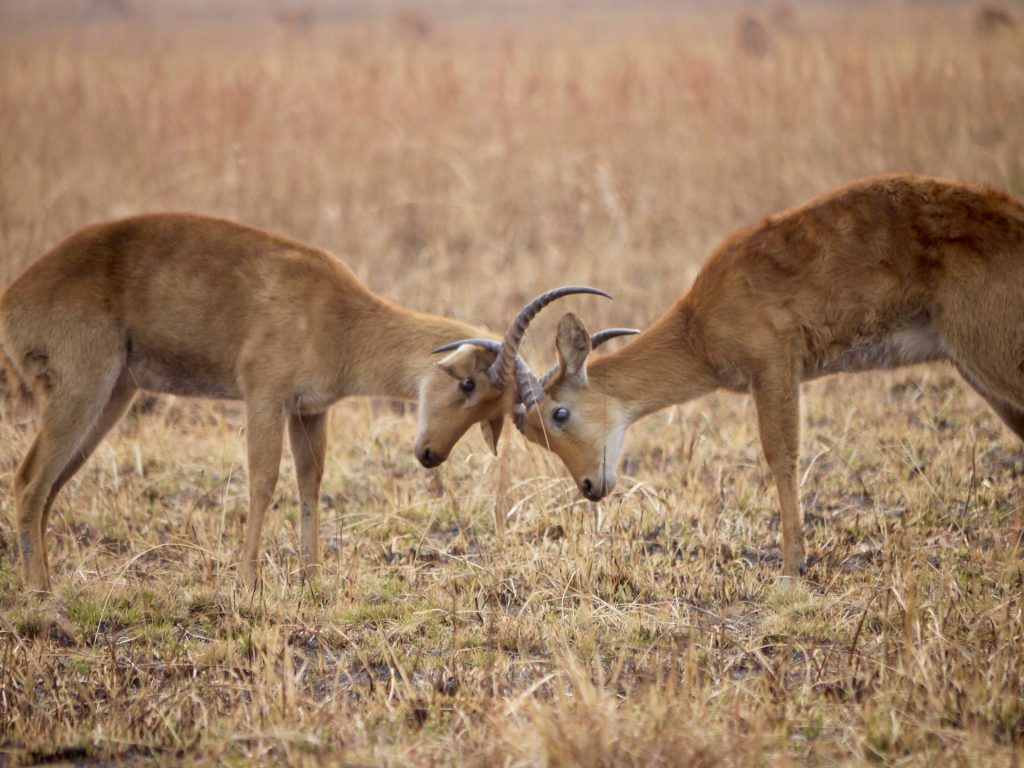 Zahlreich vertreten: Puku Antilopen auf den weiten Grasebenen und Hippos in den – auch in der Trockenzeit noch vorhandenen – zahlreichen Pools und im Kafue River.