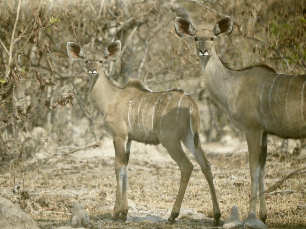 Die seltenen und scheuen Rappenantilopen haben wir hier zum ersten Mal aus nächster Nähe beobachten können. Aber auch Kudus, Wasserböcke oder die kleinen Buschböcke sind immer wieder anzutreffen.